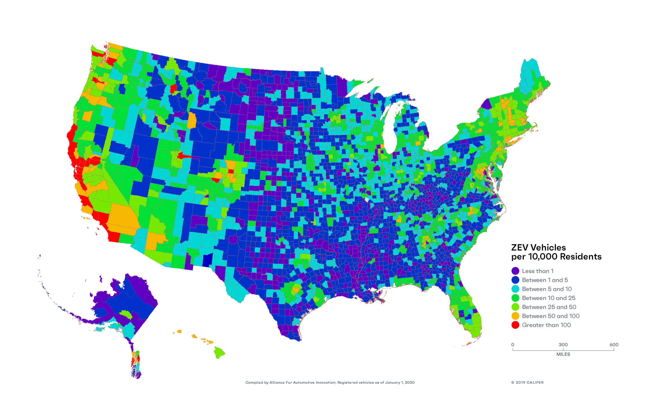 Nationwide, new vehicle sales of electric vehicles were about 2% in 2019. About half of those sales were concentrated in California. Most of sales outside of California are in states with incentives.