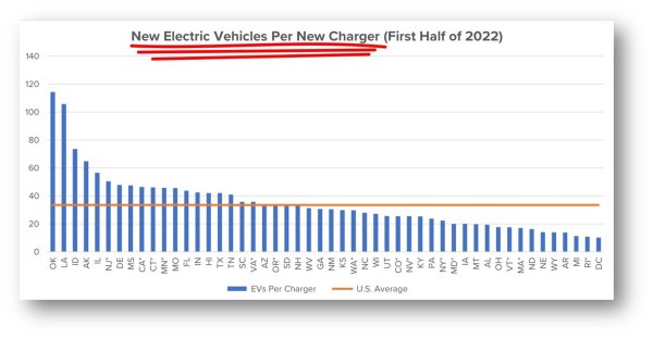 We’ve only got a bit over 100,000 non-proprietary public charging outlets in this country. We’ve added 420,000 new EVs since the beginning of 2022… but only 12,600 new chargers. We did the math: that works out to about 33 new EVs for every new public port. Not enough.