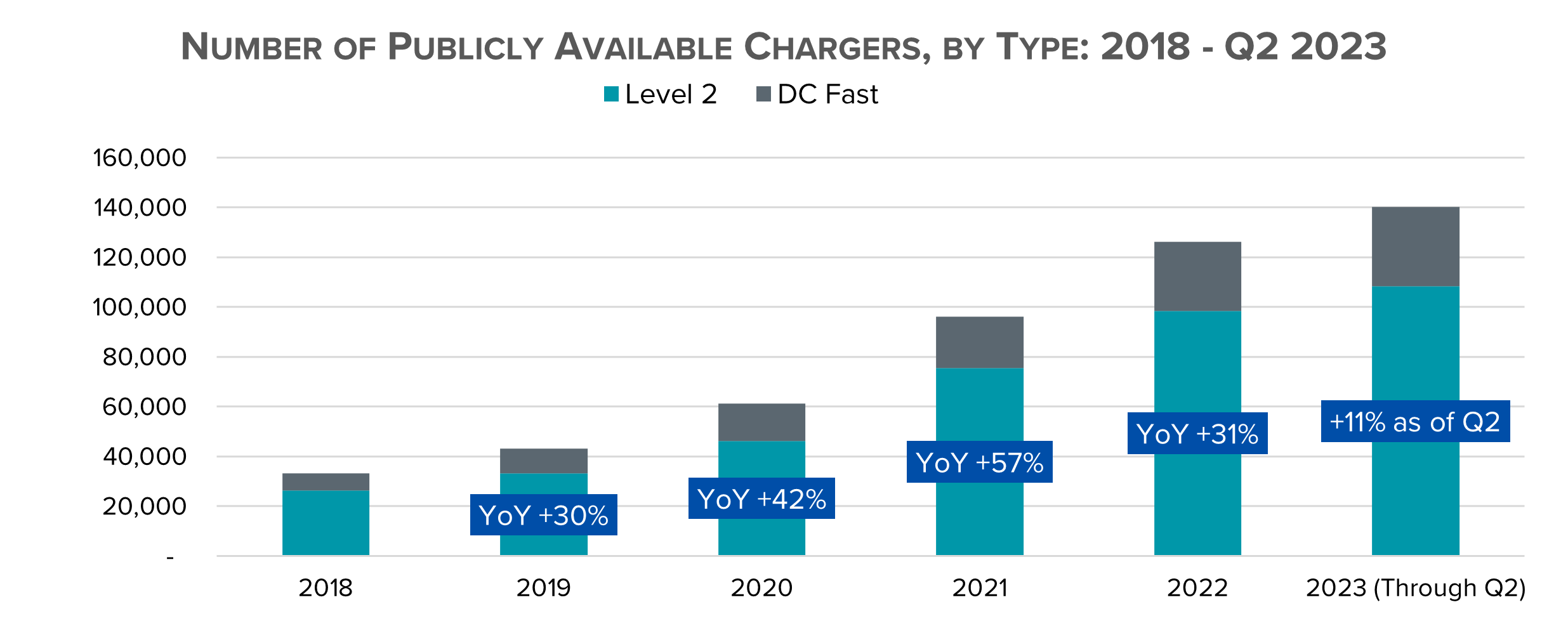 - In the first half of 2023, the number of publicly available EV chargers increased 11 percent year-over-year – while EV sales increased 57 percent;